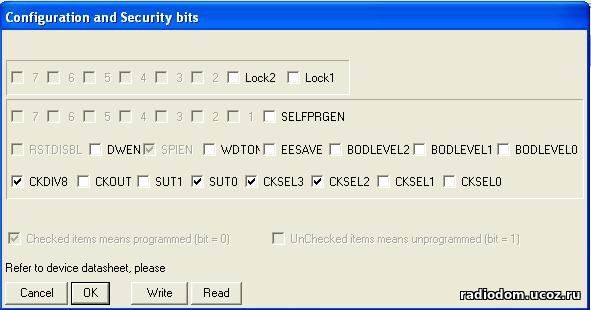 | При прошивке микросхемы Гнома программатором avrdudeprog33 фьюзы надо какие ставить?